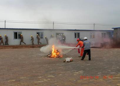演練前,項目部組織了消防預案演練培訓,使現(xiàn)場人員掌握一定的消防知識,增強員工在緊急情況下的應變能力,自我防護能力。項目部還利用張貼標語等形式大力宣傳消防安全的重要性。演練過程中,現(xiàn)場人員迅速對火災事故警報做出反應,救援小組負責人也有效組織本組組員疏散、警戒和投入滅火行動中。