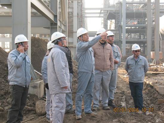 2016年1月1日,公司董事長、總經(jīng)理張傳玉在項目經(jīng)理李義成等人的陪同下,對中海油泰州一體化項目連續(xù)重整裝置、芳烴抽提裝置、燃料油加氫精制裝置、制氫裝置、石蠟潤滑油加氫裝置進(jìn)行了檢查。針對現(xiàn)場施工進(jìn)度、工程質(zhì)量、安全文明施工等方面進(jìn)行了詳細(xì)的詢問和指導(dǎo),對節(jié)日期間堅守在施工現(xiàn)場的員工表示親切問候。