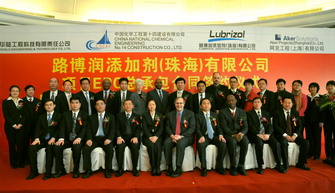 1月25日,我公司和華陸公司在南京共同與路博潤添加劑(珠海)有限公司正式簽訂了EPC總承包合同。路博潤總部副總裁Larry Norwood先生、路博潤(珠海)有限公司總經(jīng)理Timothy Phang先生、集團(tuán)公司副總經(jīng)理敦憶嵐女士、華陸公司董事長曹一平先生、華陸公司總經(jīng)理吳銀龍先生、我公司董事長、總經(jīng)理張傳玉先生、公司黨委書記李大國先生等出席簽字儀式,并分別在儀式上致辭。