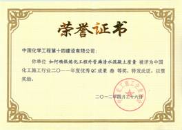 2011年度全國化工施工行業(yè)優(yōu)秀質(zhì)量管理成果發(fā)布交流會于四月底在安徽淮南舉行。此次評選活動由中國化工施工企業(yè)協(xié)會組織,涉及土建、安裝、焊接等多個(gè)專業(yè)共計(jì)96項(xiàng)QC成果參評。我公司《砼及加強(qiáng)鋼筋模板過程控制確保砼抗爆墻施工質(zhì)量》和《開展QC活動,確保氣化爐吊裝一次成功》分別榮獲化工行業(yè)一等獎,《如何確保煉化工程外管廊清水混凝土質(zhì)量》獲化工行業(yè)三等獎。