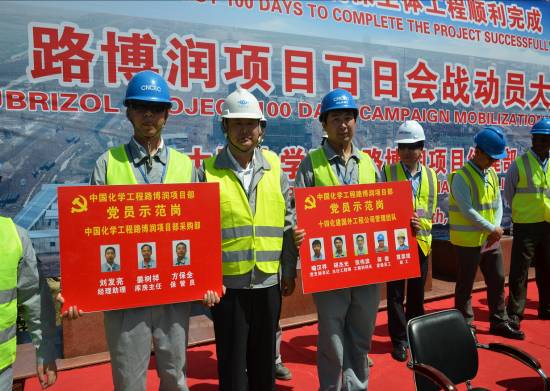 為確保8月中旬項目主體工程順利完成,5月9日,珠海路博潤項目在現(xiàn)場召開了“大干100天”百日會戰(zhàn)動員大會。路博潤添加劑(珠海)有限責(zé)任公司總經(jīng)理彭文浩、項目經(jīng)理Norman、廣東順業(yè)監(jiān)理公司總經(jīng)理王亞青、中國化學(xué)工程路博潤項目經(jīng)理部焦大鵬,公司黨委書記李大國、華南公司經(jīng)理陳申付等領(lǐng)導(dǎo)及參建員工代表共300多人參加。公司副總經(jīng)濟師、經(jīng)營部主任、華南公司黨支部書記錢岳明主持會議。