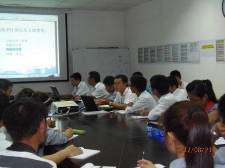 隨著路博潤項(xiàng)目各項(xiàng)施工工作的完成,各項(xiàng)結(jié)算工作將陸續(xù)展開。為加強(qiáng)項(xiàng)目部年輕團(tuán)隊(duì)的工作能力及提高在結(jié)算工作中的實(shí)際應(yīng)用水平,達(dá)到通過實(shí)戰(zhàn)培養(yǎng)優(yōu)秀年輕隊(duì)伍的目的,華南公司路博潤項(xiàng)目部于8月26日舉辦了一場易達(dá)軟件的專題培訓(xùn),全體工程技術(shù)人員悉數(shù)參加了培訓(xùn)。