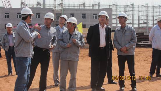 9月8日,國(guó)家安監(jiān)總局領(lǐng)導(dǎo)在集團(tuán)公司副總經(jīng)理余津勃的陪同下對(duì)中煤圖克化肥項(xiàng)目進(jìn)行了視察。國(guó)家安監(jiān)總局領(lǐng)導(dǎo)和集團(tuán)公司領(lǐng)導(dǎo)一行在公司總經(jīng)濟(jì)師、項(xiàng)目經(jīng)理史衛(wèi)東的陪同下視察了我單位承建的公用工程鍋爐裝置現(xiàn)場(chǎng)。