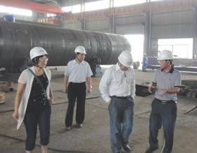 9月10日上午,山東濱洲中海瀝青股份有限公司工程部姜振平經(jīng)理和袁樹嵐工程師,在南京機械廠廠長文志安等廠領(lǐng)導(dǎo)的陪同下,至南京機械廠察看容器車間設(shè)備制造情況。