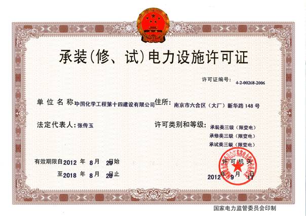 9月27日,公司電力設(shè)施許可證有效期延續(xù)注冊順利通過江蘇省電力監(jiān)管專員辦公室審查,換取了新證。