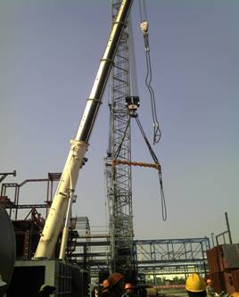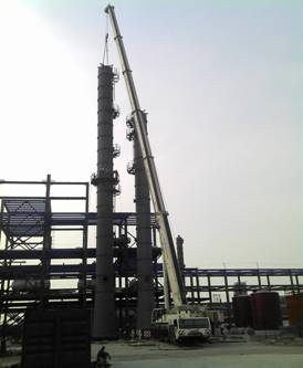 德馬格350噸汽車起重機(jī)是南京飛馳吊裝工程有限公司現(xiàn)今噸位最高、性能最好的一臺(tái)汽車起重機(jī)。于2012年2月14日由申屠洪武、麥柯柯兩位師傅開往廣東省珠海路博潤(rùn)項(xiàng)目部駐勤,經(jīng)過7個(gè)月的辛勤工作,又于9月轉(zhuǎn)戰(zhàn)至浙江寧波項(xiàng)目部,工作期間為項(xiàng)目順利完成了六臺(tái)60噸冷卻器、順酐裝置再閃蒸塔、焚燒系統(tǒng)高空煙囪等大型設(shè)備的吊裝工作。12月26日已安全抵達(dá)公司生產(chǎn)基地停車場(chǎng)進(jìn)行休整。