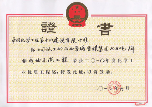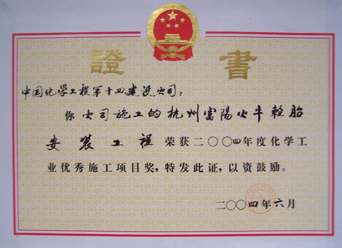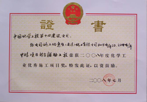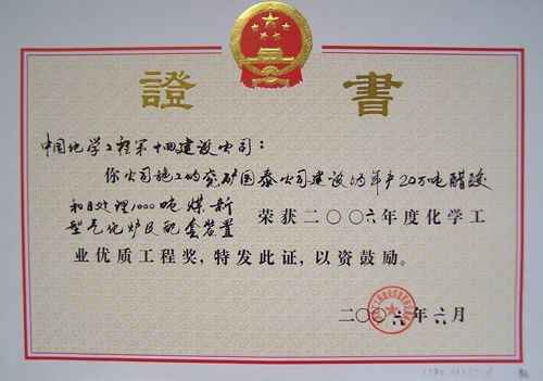 歷經五十年不斷發(fā)展,公司憑借精湛的技術、豐厚的經驗、雄厚的實力和優(yōu)質的服務,為國家化學工業(yè)發(fā)千余項精品工程,獲得“國務院嘉獎令”、“中國建筑工程魯班獎”,“國家百項經典及精品工程獎”、“國家優(yōu)質工程金獎“國家優(yōu)質工程銀獎”、“全國優(yōu)秀焊接工程獎”、“全國優(yōu)秀吊裝工程獎”、“化學工業(yè)優(yōu)質工程獎”等各種嘉獎200余項;并多次被授予“全國優(yōu)秀施工企業(yè)”、”全國建筑業(yè)先進企業(yè)”、“全國用戶滿意施工企業(yè)”,“全國建筑業(yè)誠信企‘’全國建筑業(yè)AAA信用企業(yè)”、“全國重合同守信用企業(yè)”、“江蘇省知名建設承包商”等多種榮譽稱號。