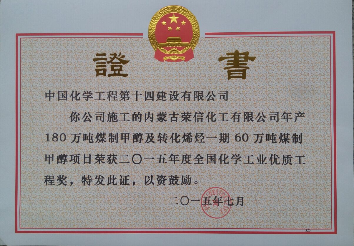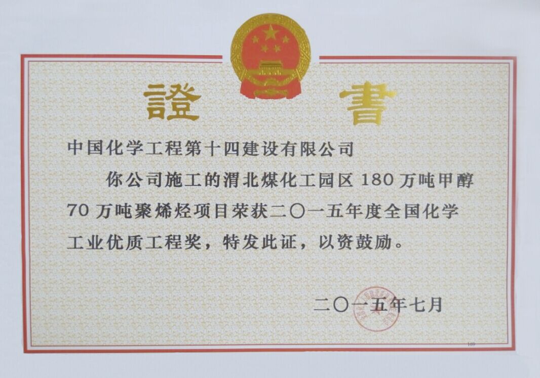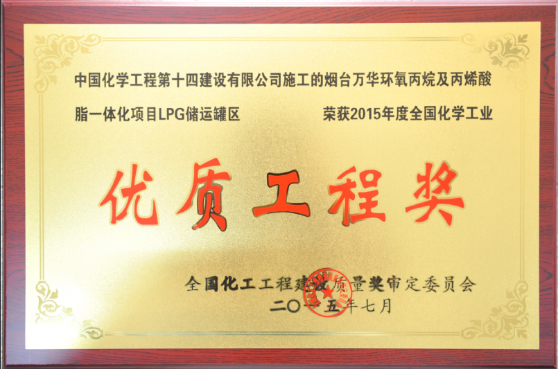 歷經(jīng)五十年不斷發(fā)展,公司憑借精湛的技術(shù)、豐厚的經(jīng)驗、雄厚的實力和優(yōu)質(zhì)的服務(wù),為國家化學(xué)工業(yè)發(fā)千余項精品工程,獲得“國務(wù)院嘉獎令”、“中國建筑工程魯班獎”,“國家百項經(jīng)典及精品工程獎”、“國家優(yōu)質(zhì)工程金獎“國家優(yōu)質(zhì)工程銀獎”、“全國優(yōu)秀焊接工程獎”、“全國優(yōu)秀吊裝工程獎”、“化學(xué)工業(yè)優(yōu)質(zhì)工程獎”等各種嘉獎200余項;并多次被授予“全國優(yōu)秀施工企業(yè)”、”全國建筑業(yè)先進企業(yè)”、“全國用戶滿意施工企業(yè)”,“全國建筑業(yè)誠信企‘’全國建筑業(yè)AAA信用企業(yè)”、“全國重合同守信用企業(yè)”、“江蘇省知名建設(shè)承包商”等多種榮譽稱號。