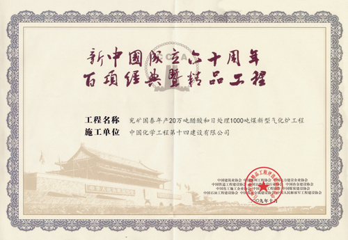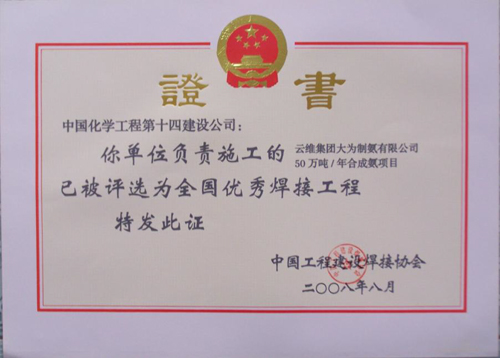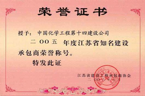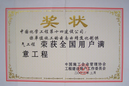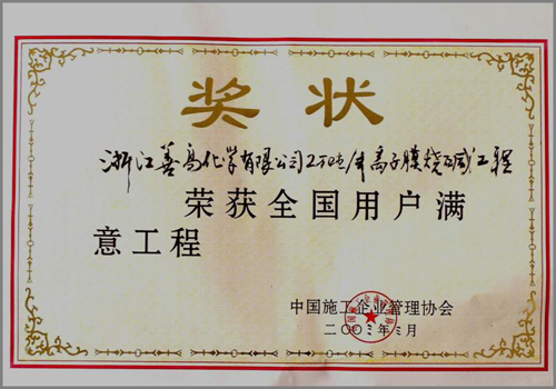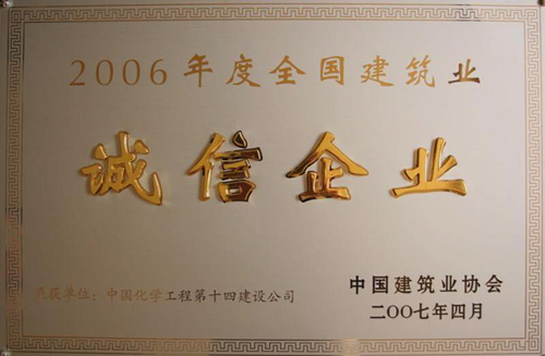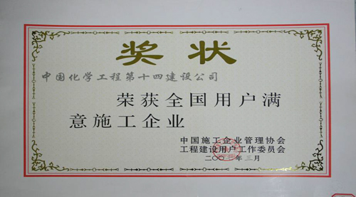 歷經(jīng)五十年不斷發(fā)展,公司憑借精湛的技術、豐厚的經(jīng)驗、雄厚的實力和優(yōu)質的服務,為國家化學工業(yè)發(fā)千余項精品工程,獲得“國務院嘉獎令”、“中國建筑工程魯班獎”,“國家百項經(jīng)典及精品工程獎”、“國家優(yōu)質工程金獎“國家優(yōu)質工程銀獎”、“全國優(yōu)秀焊接工程獎”、“全國優(yōu)秀吊裝工程獎”、“化學工業(yè)優(yōu)質工程獎”等各種嘉獎200余項;并多次被授予“全國優(yōu)秀施工企業(yè)”、”全國建筑業(yè)先進企業(yè)”、“全國用戶滿意施工企業(yè)”,“全國建筑業(yè)誠信企‘’全國建筑業(yè)AAA信用企業(yè)”、“全國重合同守信用企業(yè)”、“江蘇省知名建設承包商”等多種榮譽稱號。